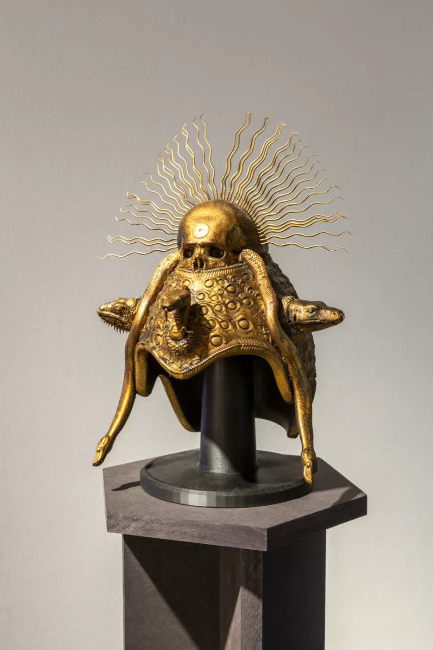 In der eigens für die Ausstellung SALZ. TON. GRANIT. produzierte Arbeit verbindet der Künstler sein langjähriges Interesse an den Verflechtungen von Wissen, Wissenschaft und Macht mit seiner vielschichtigen künstlerischen Praxis. Dabei verknüpft er konzeptuelle Kunst und experimentelle Musik, dystopische und dennoch hoffnungsvolle Mytho-Poesi und spekulative Erzählungen und lädt so dazu ein, sich mit einer weitreichenden philosophischen Frage zu befassen: Dem Spannungsverhältnis zwischen Kultur und Technologie. Und während er auf den Nutzen und die Wahrheit, die in Fiktionen gebündelt sind, hinweist, untermauert er seine kritischen Überlegungen mit Humor.