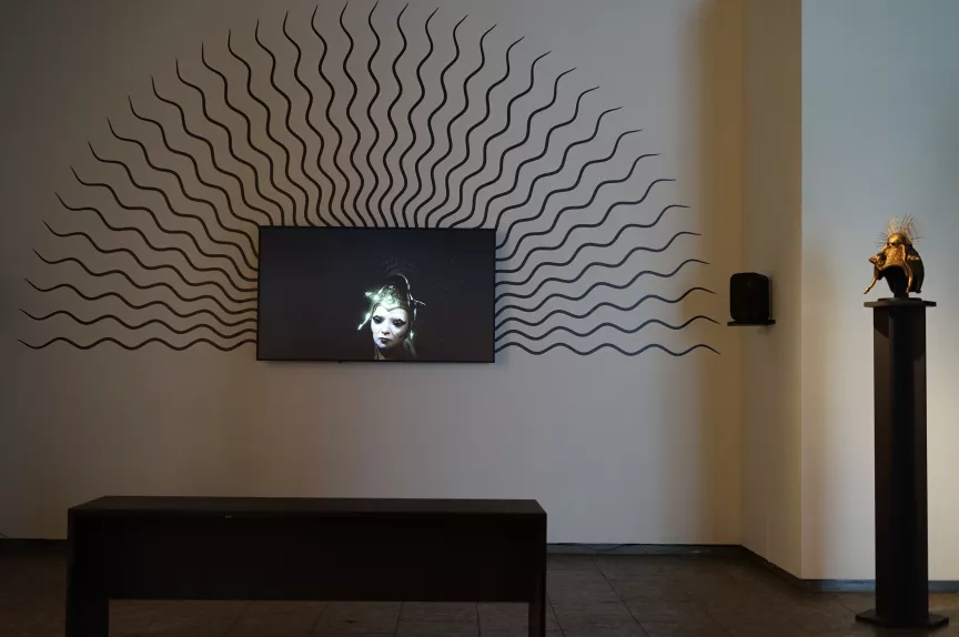 „Das oberste Ziel von Kultur ist es, zu beherrschen“, singen die Nymphen. „Wie kann etwas ohne Gewalt verändert werden? Das ist die ökologische Frage!“ Im Zentrum der Arbeit von András Cséfalvay steht die derzeitige gesellschaftliche Debatte über Energiezukünfte, die grüne Transformation [Green Transformation] die dringend gebraucht wird, und die Klimakatastrophe, deren Auswirkungen weltweit spürbar sind. Vor diesem Hintergrund stellt sich die Frage, ob technologische Lösungen möglich und wünschenswert sind. Ist es überhaupt angebracht, optimistisch auf den Bereich der Technik zu blicken? Die künstlerische Arbeit regt dazu an, über die Beziehung zwischen Mensch und Natur nachzudenken. Gleichzeitig stellt sie den Zwiespalt zwischen Wissenschaft und Kontrolle in den Vordergrund: „Ich will dich kennen, damit du keine Macht über mich hast. Aber ich will dich nicht so gut kennen, dass ich dich überwältigen könnte. singen András Cséfalvays’ mythologische Figuren und betonen somit die oftmals übermenschlichen Auswirkungen unseres Handelns.