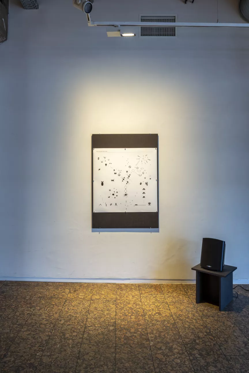 Soudinstallation, grafische Partitur, 2024Katarina Sevic ist in doppelter Funktion am Projekt SALZ. TON. GRANIT. beteiligt: Sie hat die visuelle Identität des Projektes entwickelt, ihre Recherchen für das Grafikdesign bildet gleichzeitig die Grundlage für eine neue künstlerische Arbeit, die sie für die Ausstellung entwickelt hat. Anders als die anderen beteiligten Künstlerinnen, deren Arbeiten ortsspezifisch eingebettet sind sich und in der Ausstellung mit der künstlerisch-kuratorischen Forschung die dem Projekt zugrunde liegt verbinden, gilt Katarina Šević Interesse dem übergeordneten Feld der “Atomsemiotik”. In diesem Zuge befasst sie sich mit verschiedenen visuellen Kommunikationsformen, die in nukleare Kultur eingeschrieben sind, und untersucht wie diese Zeichen und Symbole sowohl von Befürworterinnen als auch von Kritiker_innen der Kernkraft und der Anti-Atom-Bewegung verwendet werden. Die Atomsemiotik ist ein herausforderndes, höchst spekulatives und ausgesprochen konzeptionelles Forschungsfeld. Ein erklärtes Ziel ist es, Sprache und Kommunikation - wie wir sie heute verstehen - zu verändern und sich mit der (Un-)Möglichkeit auseinanderzusetzen, künftige Generationen menschlichen und nicht-menschlichen Lebens vor den Gefahren radioaktiver Endlager zu warnen. Im Umkehrschluss bedeutet das, dass Designsprachen, Zeichen und Signale entwickelt werden müssen, die über die Dauer von 100.000 Jahren verständlich bleiben. Gedacht werden muss demnach in der Zeitlichkeit nuklearer Halbwertszeiten, um sich die Kommunikation zwischen Lebewesen in einer fernen Zukunft vorzustellen.