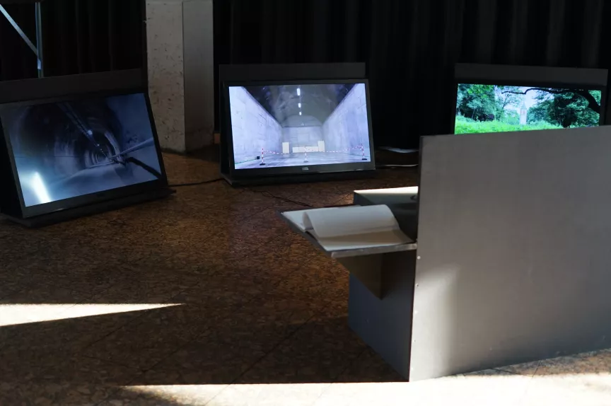 In einer Videoinstallation verbindet sich der langfristige Austausch der Künstlerinnen Krisztina Erdei und Dániel Misota mit der Dorfgemeinschaft von Bátaapáti. Seit 2011 beheimatet die Gemeinde im ungarischen Landkreis Tolna ein Endlager für schwache und mittelradioaktive Abfälle. Die künstlerische Recherche untersucht die komplexen sozialen, wirtschaftlichen und kulturellen Auswirkungen die das Endlager auf das Leben in der Gemeinde hat. Dabei werden die Beteiligung der Dorfgemeinschaft, künstlerische Intervention und persönliche Erzählungen miteinander verwoben. Dabei legen Krisztina Erdei und Dániel Misota ihr Hauptaugenmerk auf die privaten und nicht-offiziellen Geschichten der Dorfbewohnerinnen, die ihren Alltag im vermeintlich bedrohlichen Schatten des Atommülllagers verbringen. Über ein Jahr lang kehrten die Künstlerinnen regelmäßig nach Bátaapáti zurück und haben persönliche Beziehungen zu Bewohnerinnen aus unterschiedlichen Generationen und mit unterschiedlichen Hintergründen aufgebaut. Aus diesem Austausch entstand eine Sammlung von persönlichen Geschichten, die widerspiegeln, wie unterschiedlich in der turbulenten Geschichte Bátaapáts in den vergangenen zweihundert Jahren gelebt, gearbeitet und geliebt wurde. Die individuellen Erzählungen stehen den politisch und wirtschaftlich bedeutsamen und „großen”Erzählungen gegenüber. Dieser Gegensatz wird im Rahmen der künstlerischen Arbeit untersucht, berücksichtigt wird dabei, wie die Existenz des Endlagers das kollektive Gedächtnis, den Umgang mit geteiltem Raum und die alltäglichen Begebenheiten in der Gemeinde verändert.